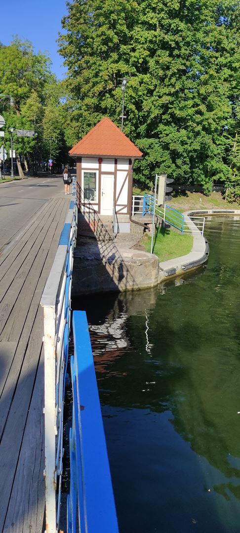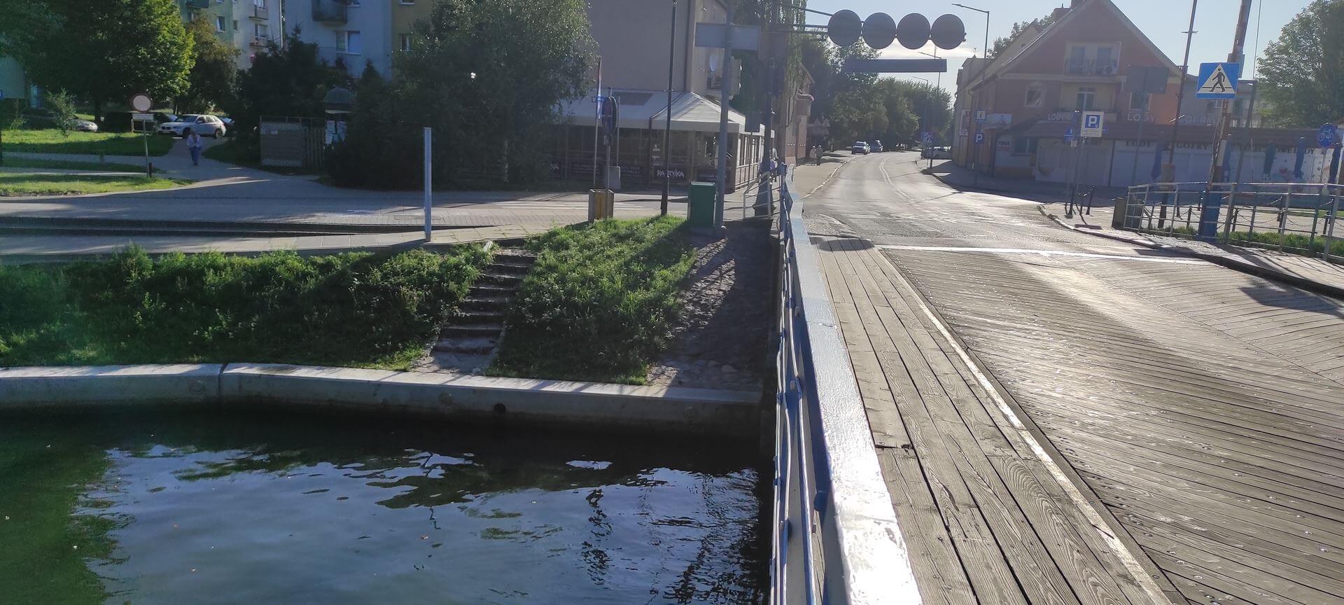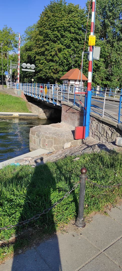 Most obrotowy nad Kanałem Łuczańskim został zbudowany w 1898 roku przez firmę Beuchelt & Co. Grunberg z Zielonej Góry. Celem było zapewnienie dojazdu z miasta do sąsiadującej po zachodniej stronie kanału Twierdzy Boyen. Obiekt posiada przęsło mostowe, które obraca się w bok o 90° i ustawia równolegle do nabrzeża. Przeprawa została wysadzona w powietrze w 1945 roku. Odbudowana po wojnie, posiadała oryginalny mechanizm, który umożliwiał otwieranie mostu ręcznie przez jednego operatora. W latach 1969 -1970 obiekt został wyposażony w napęd elektryczny. Zbyt szybkie otwieranie mostu spowodowało uszkodzenia konstrukcji i nabrzeża, więc w 1985 roku unieruchomiony most został zastąpiony przez tymczasowy most saperski. W 1993 roku przeprowadzono generalny remont i przywrócono stan pierwotny z ręcznym otwieraniem. Na uwagę zasługuje pośrednie posadowienie przyczółków mostu, które zostało wykonane z pali drewnianych na torfach, sięgających w tym rejonie nawet do 7,0 m p.p.t.